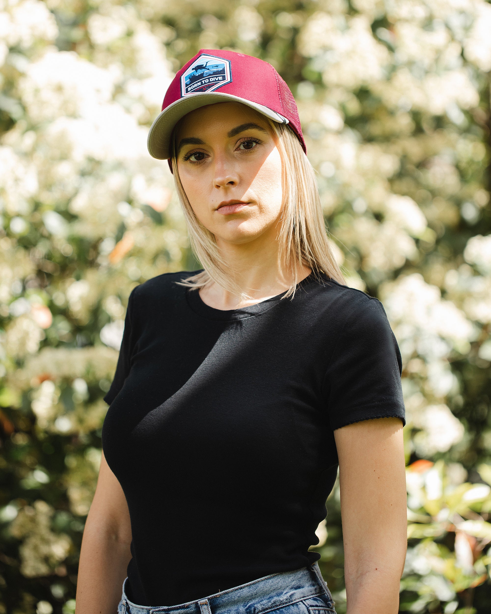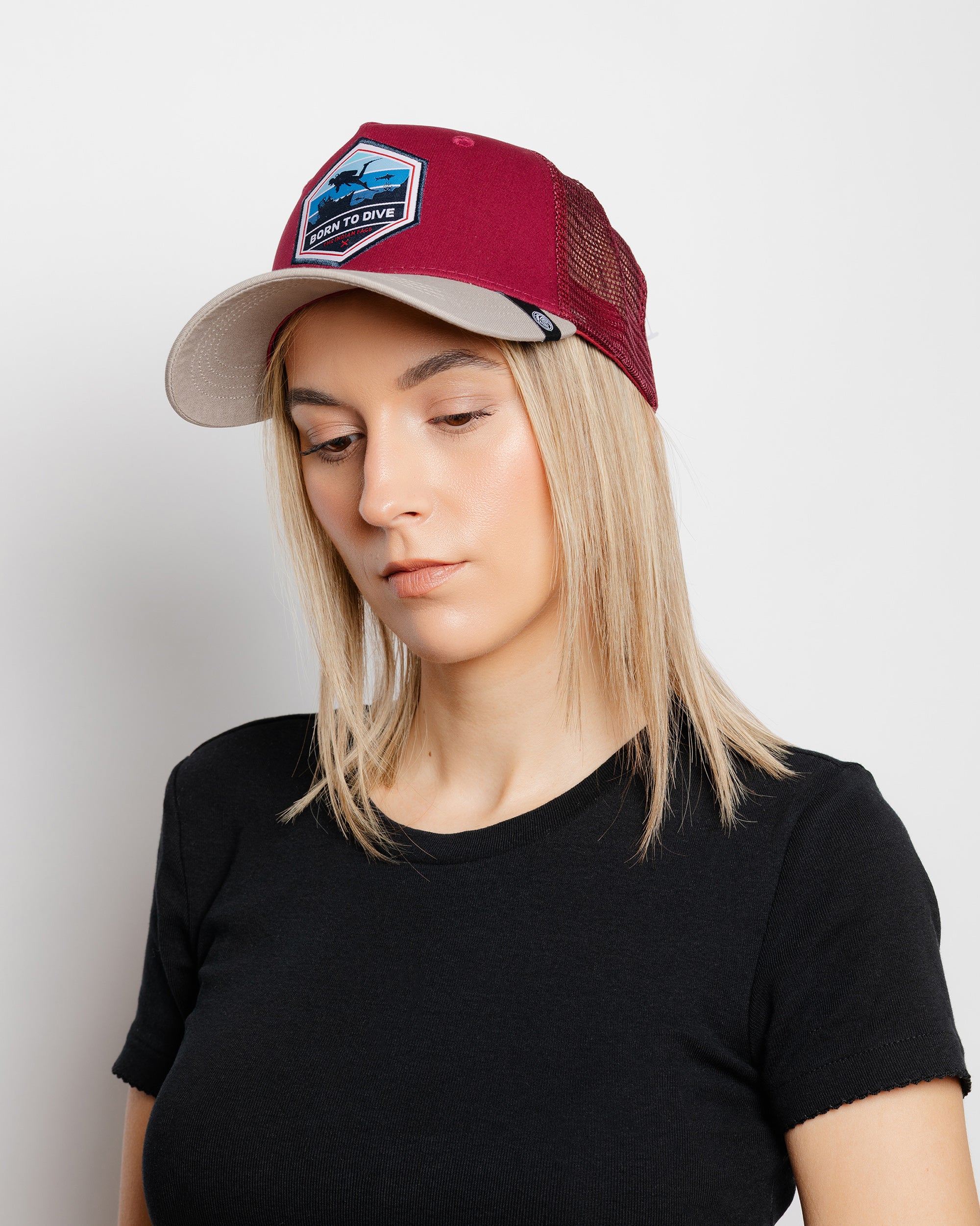 Gorra trucker deportiva unisex para hombre y mujer Born to Dive Red / Grey